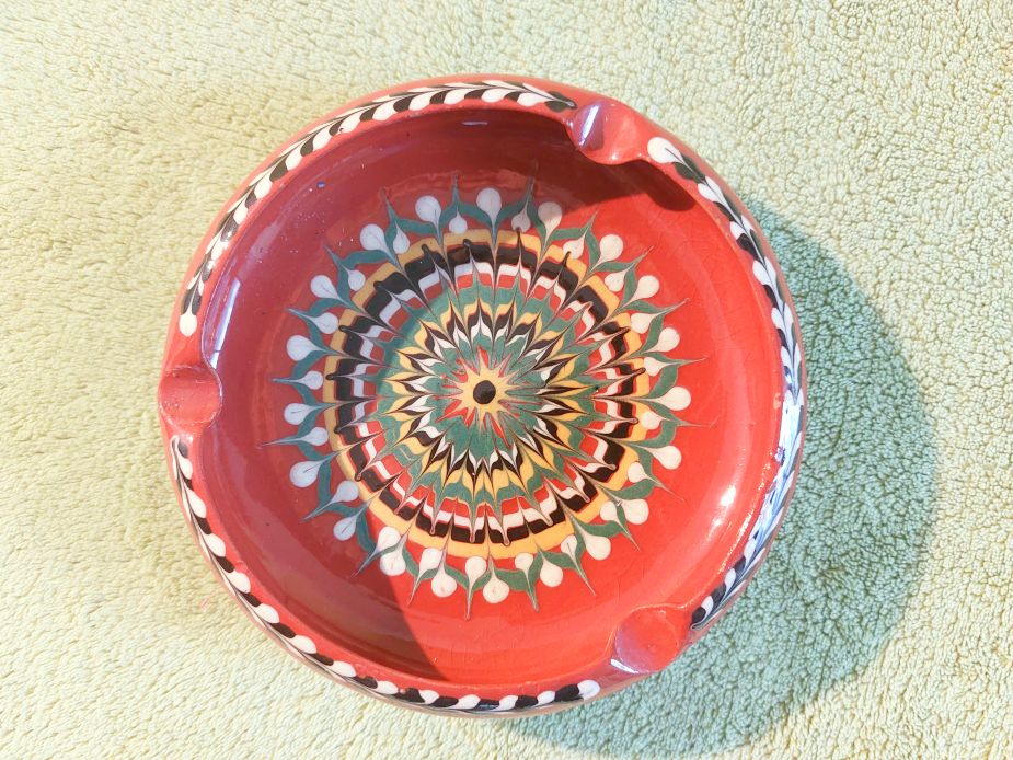 Ez a kerámia hamutartó nem csupán egy praktikus tárgy, hanem dekoratív eleme lehet nappalinak, dohányzó saroknak vagy retró hangulatú enteriőrnek egyaránt. Bolgár kerámia tárgyak népszerűek gyűjtők és nemzetközi kézműves stílus kedvelői körében is, mivel minden darab egyedi festéssel és mintázással rendelkezik – így minden darab külön történetet mesél el.