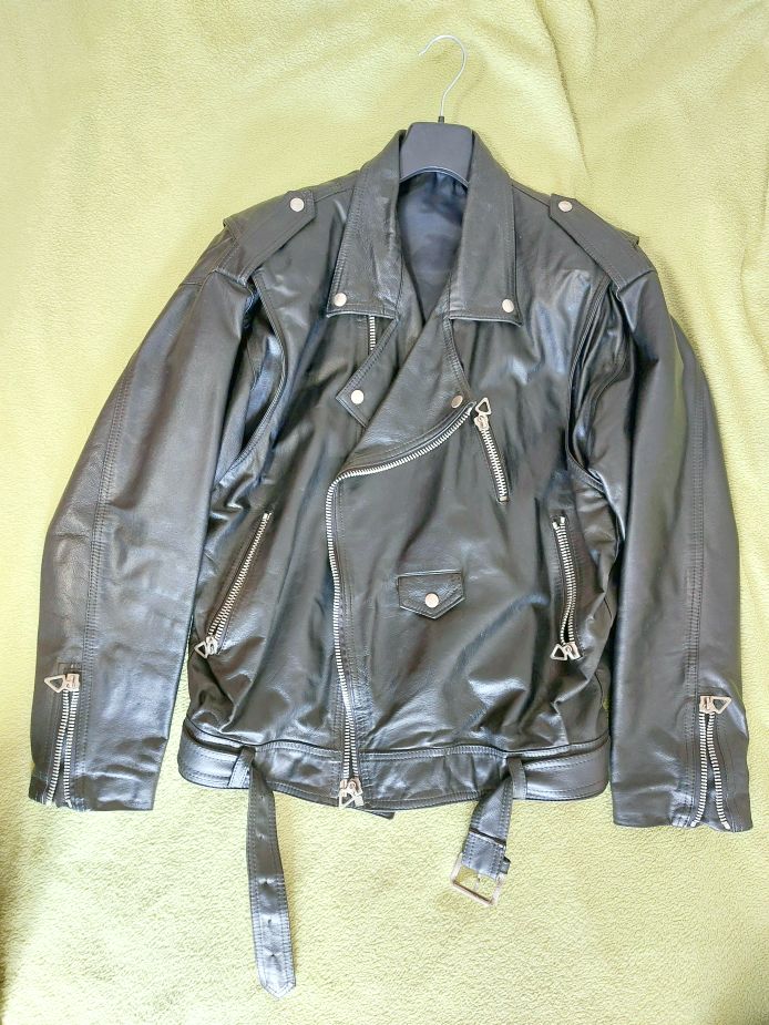 Eladó fekete motoros bőrdzseki, bőrkabát (kb. 175cm magas, 80-90kg férfiméret)