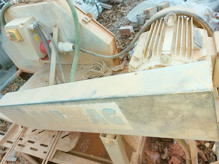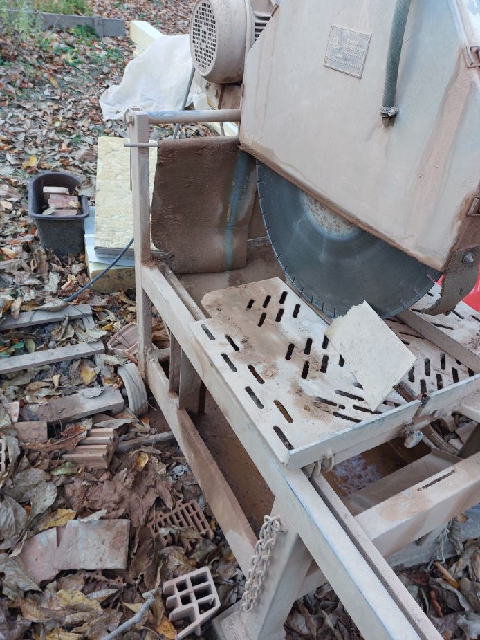 Vizes téglavágó gép 650mm gyémánttárcsával, erős 4kW 3 fázisú 400V villanymotorral, új hűtővíz szivattyúval. Sokféleképp beállítható, milliméter pontos vágást tesz lehetővé, magasságban maximum Porotherm 30 magas téglát darabol. Kipróbálható előre egyeztetve a Szépvölgyi út mellett.