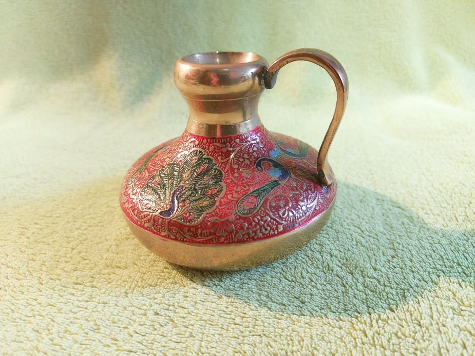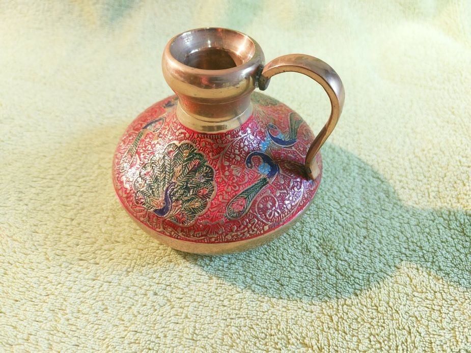 Eladó indiai páva motívumos réz/bronz gyertyatartó