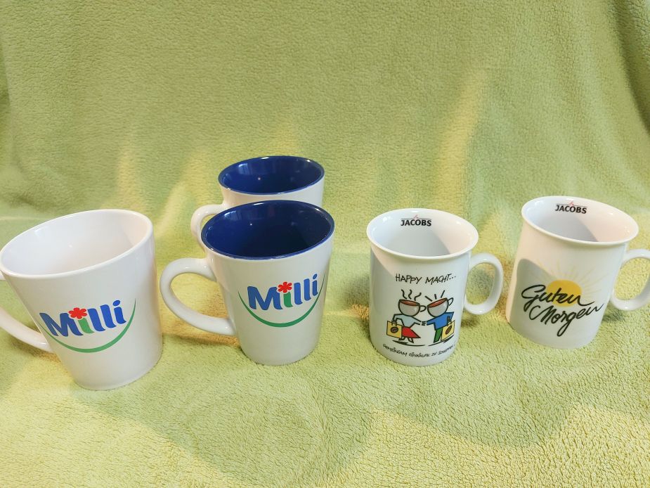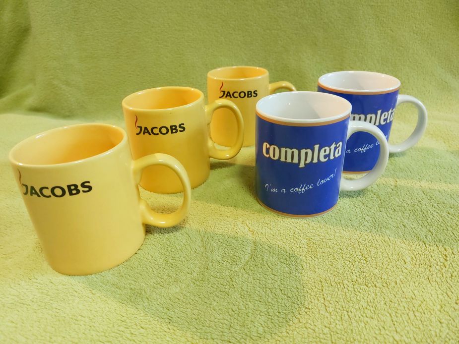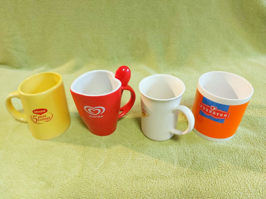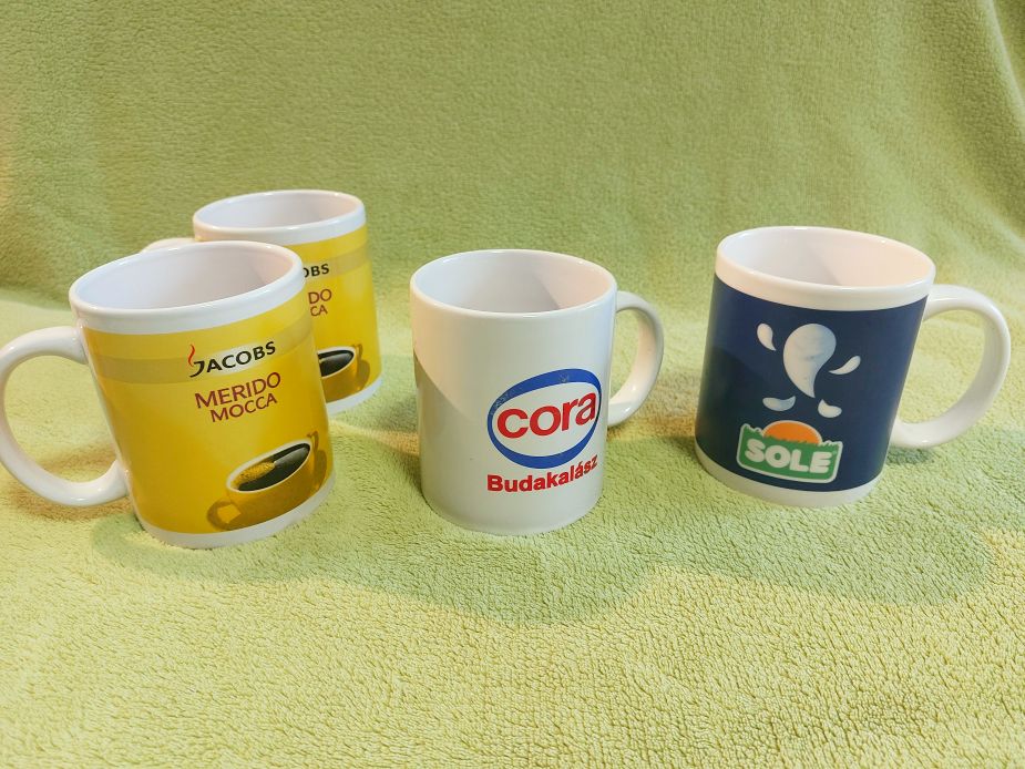 Eladó különféle új, nem használt, logózott bögrék: Jacobs, Completa, Szerencsejáték Rt., Milli, Cora, Sole, Maggi, Algida, Eduscho, Podravka, Eduscho