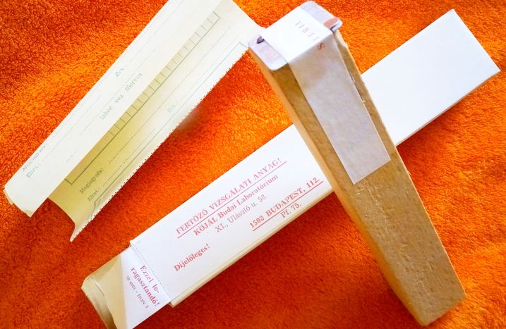 retró egészségügyi cikkek, elsősegély doboz tartalma: ammónia párna, jód ampulla, steril mintavevő készlet