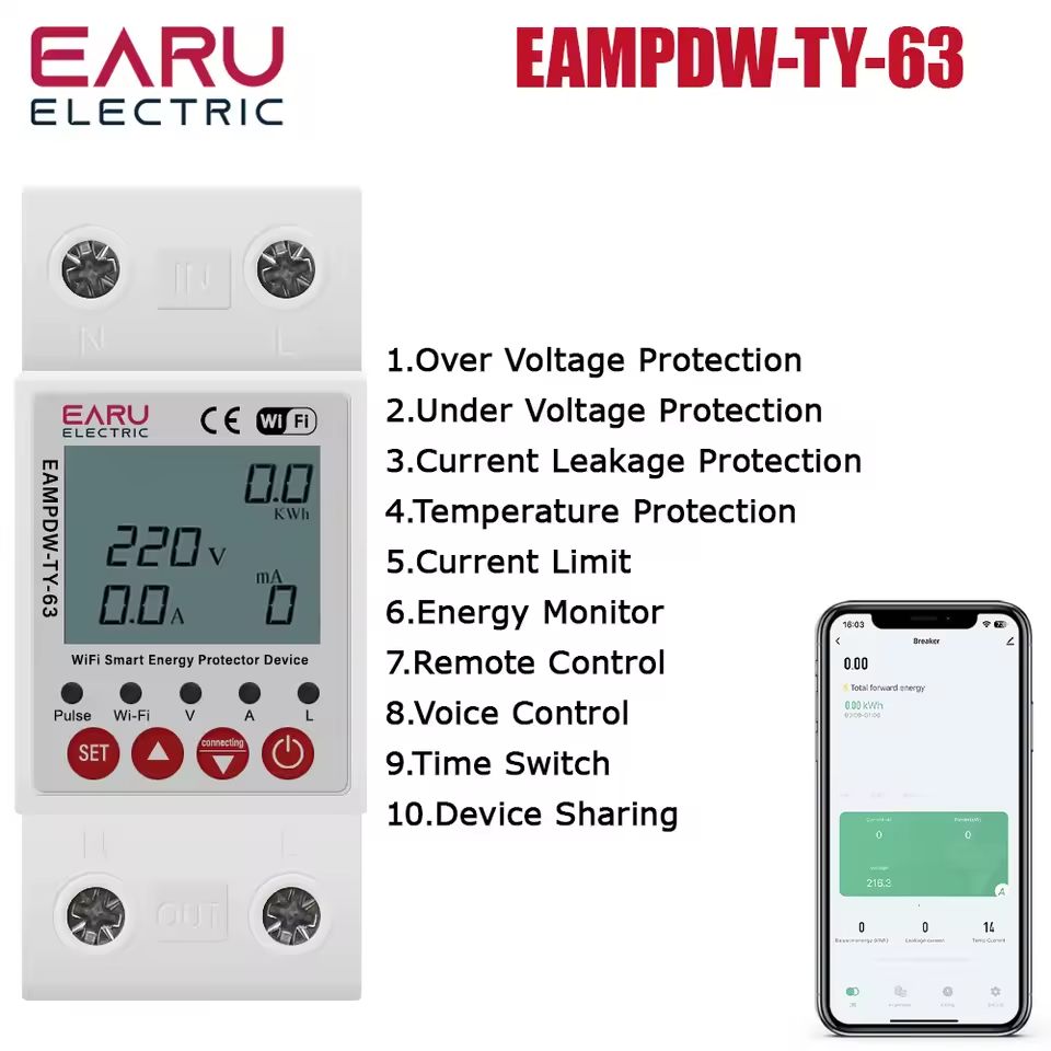 Új programozható fogyasztásmérő, kismegszakító, feszültségfigyelő, életvédelmi relé, ÁVK