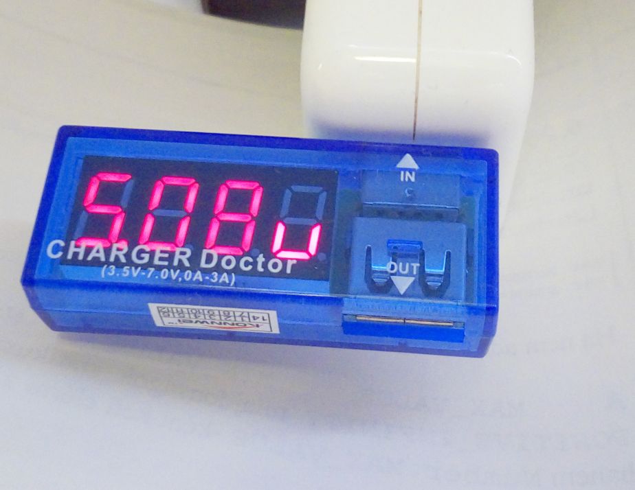 A hibakeresésre egy egyszerű digitális mérőműszer is elegendő lenne – de sokkal kényelmesebb az USB porta dugható kombinált feszültség- és árammérő eszköz használata. Egyszerűen, mint egy közdarabot használva mérhetünk. A feszültségmérést 3.5..7V, az áramfelvételt 0…3A közt méri. A kijelzés 2 másodpercenként váltakozva mutatja az áram- és a feszültségértékeket.